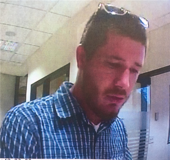The suspect is described as a white male, approximately 20 to 30 years-of-age, 5’10”tall, 170 lbs., short brown hair, with full facial hair wearing a light blue button-up plaid long-sleeve shirt.